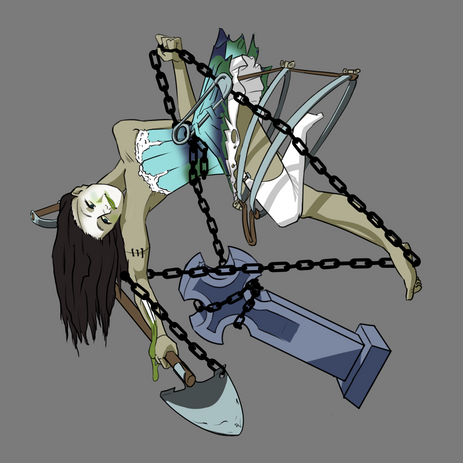 Ghoul is a character created for the fighting game Downbeat, developed by Flyguy Interactive. I was commissioned to design the character based on their description. For this character the brief was much shorter and I had more input in the initial stages of the character, as a result I provided five thumbnail sketches before narrowing my focus on a portrait. From the five thumbnails two were chosen as the most promising which I developed more. Feedback on these two further developed ideas pointed me in a new direction, leading to the final design and color scheme.